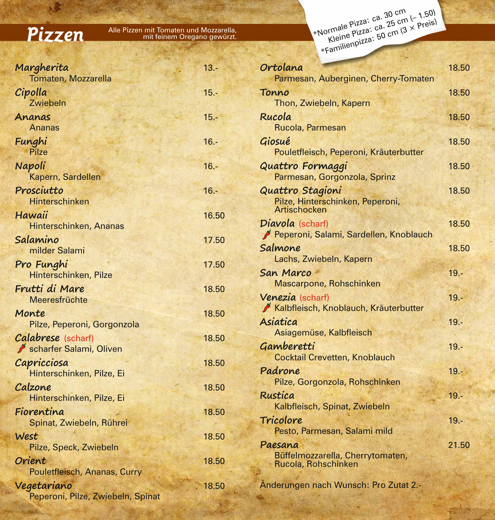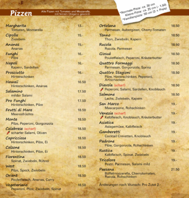 Gerne verwöhnen wir Euch mit unseren traditionellen, italienischen Pizzen und unseren feinen Pasta-Gerichten.